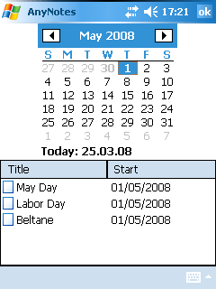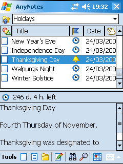 notes organizer and personal information manager (PIM). It can be used as a standalone pocket application and in conjunction with regular desktop AnyNotes. With Pocket AnyNotes you can: